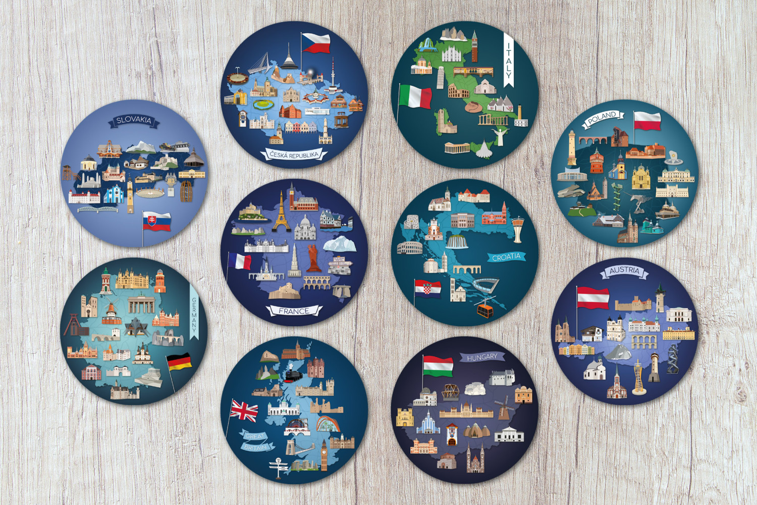 Připravili jsme pro vás nové nálepky na obal Turistického deníku, které zobrazují památky z jednotlivých států.